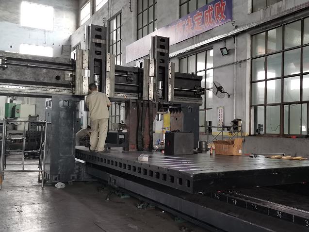 機床的結構特點:固定式床身、工作臺移動;主軸箱隨溜板上下移動;亦可沿橫梁左右移動實現三軸聯動;配置18.5KW主鏜銑頭。機床主銑頭具有銑削、鏜削、鉆削、锪孔等功能,適用于機械、鋼鐵、能源、汽車、航空航天、兵器、船舶等行業的大、中型零件的加工。配備附件銑頭后可實現工件的一次裝夾,安裝直角銑頭可五面加工,一機多用,提高了工件的。
